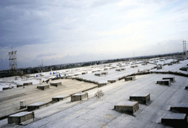 施工面積為160000平方米,采用的是水貂牌603氯化聚乙烯卷材、金球牌JQ-168純丙烯酸彈性涂料。
