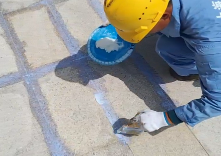 第二步:在瓷磚縫處涂刷濃縮厚質型涂料。剛開始涂刷時涂料是乳白色,干后透明色,涂刷第2或3遍時,一定要待前道涂膜干透現(xiàn)透明色時才能施工,也可大面積刮涂或刷涂施工。